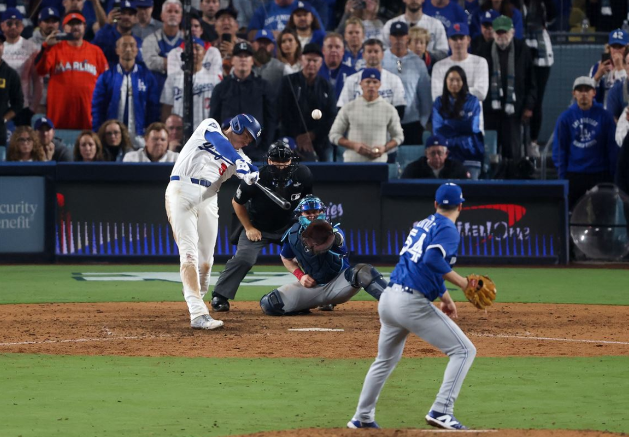 However, the Dodgers were far from out of the game, and two solo home runs in the eight and ninth inning tied the game up. The Blue Jays had a chance to walk it off in the bottom of the ninth with the bases loaded and only one out, but Yoshinobu Yamamoto came out of the bullpen on zero days rest and got out of the jam. With the bases loaded and the infield in, Dalton Varsho hit a ground ball to Miguel Rojas who gunned out Isiah Kiner-Falefa at the plate on a very close play. Kiner-Falefa probably could have scored, but as sophomore Jamie Franklin explained, “He got no secondary lead, and he was only a few feet off the bag when the pitch was thrown.” A few feet may not seem like much, but in a play that came down to inches, it was the difference between winning and losing a World Series.