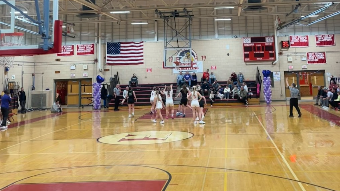 The two teams climbed their way up the scoreboard together throughout the first three quarters, yet during the fourth quarter, Hingham jumped up with a lead of 6 points, and then sealed the win by 8 after two foul shots made by Anna Post. Dee Sweeney, a sophomore at Hingham High School, states that, “It was a really exciting game and I’m really proud of the team! This is a great cause I am happy to support. I cannot wait to see how the rest of the season plays out!”